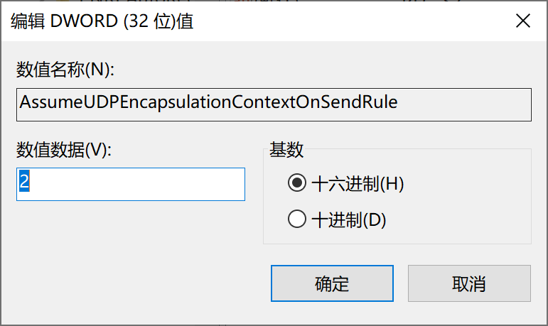 - 右键,新建Dword值,名为AssumeUDPEncapsulationContextOnSendRule